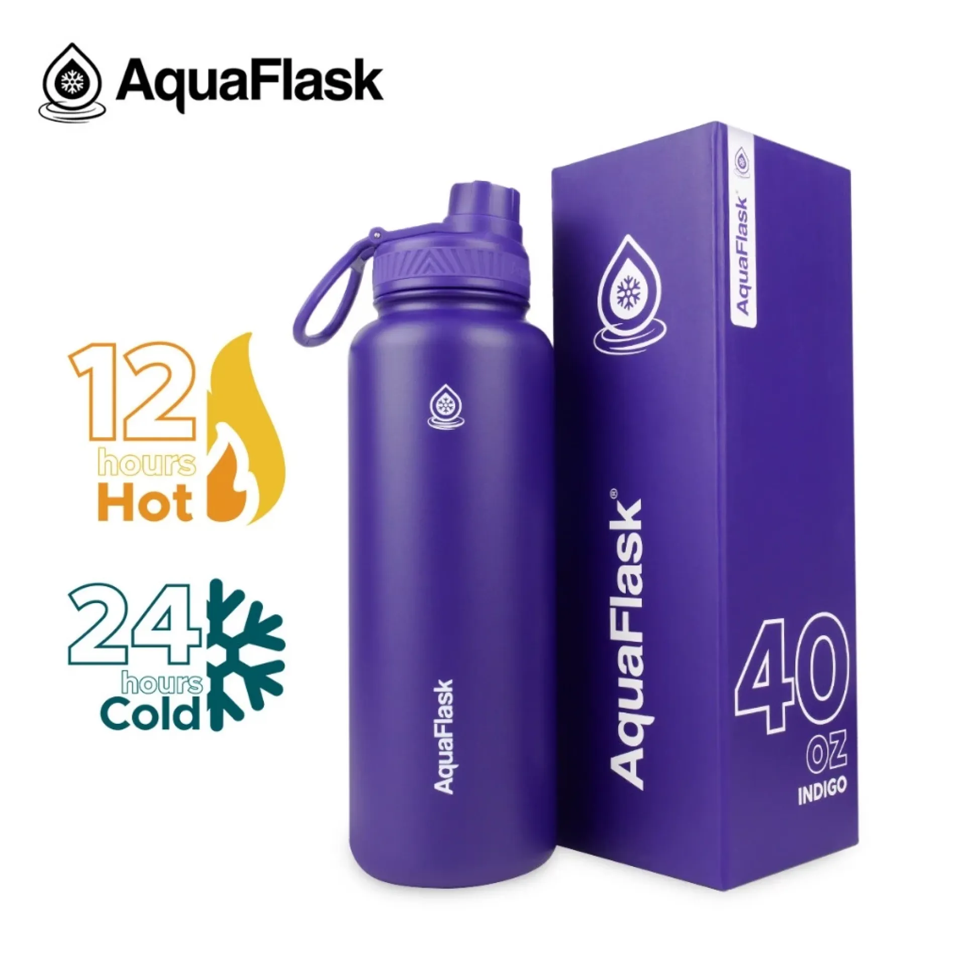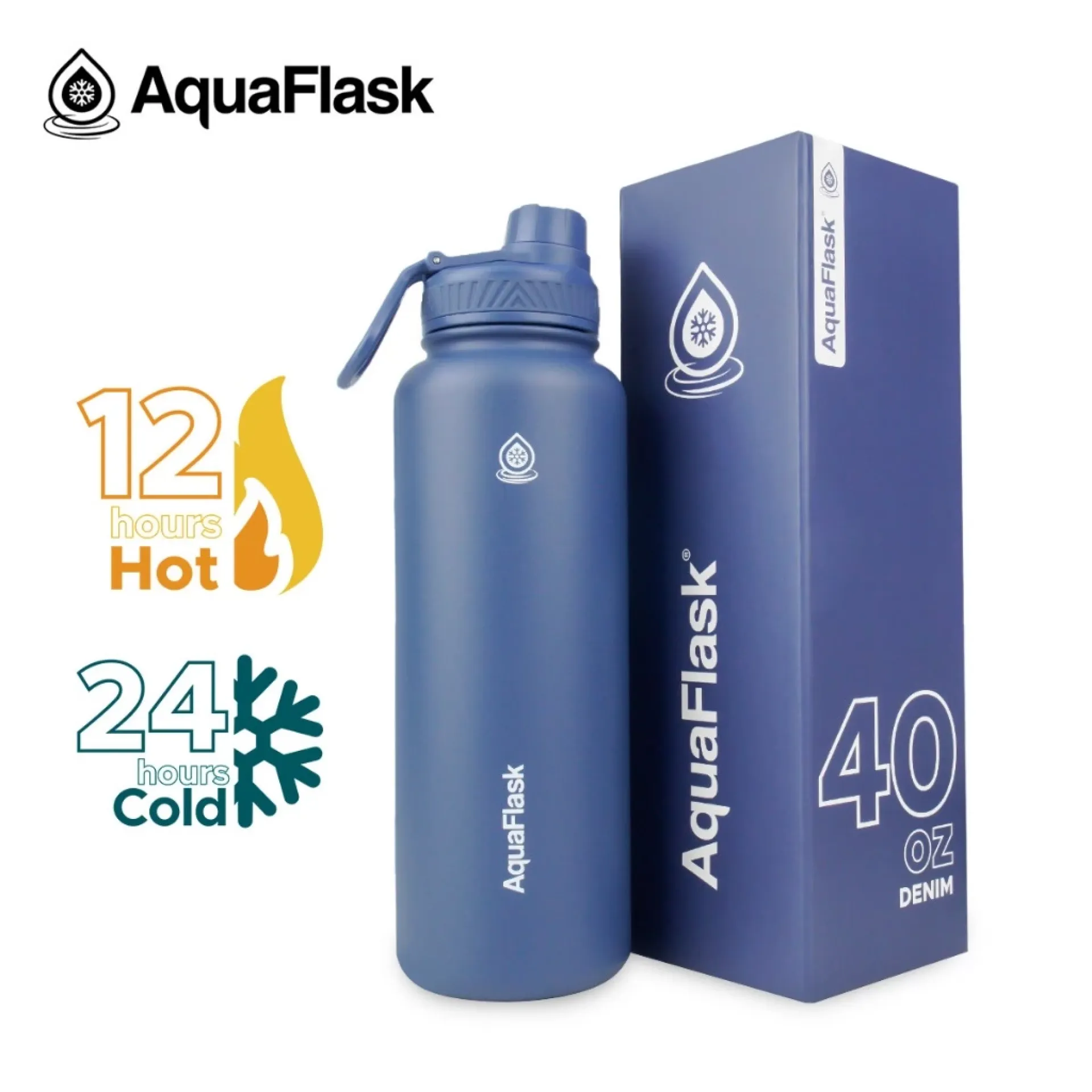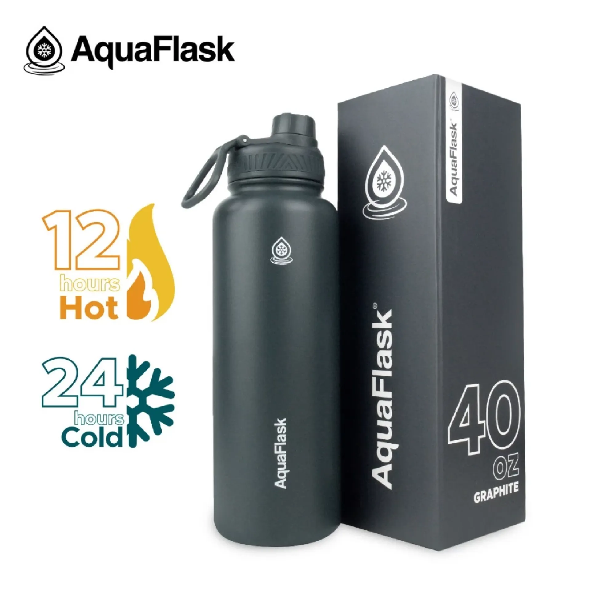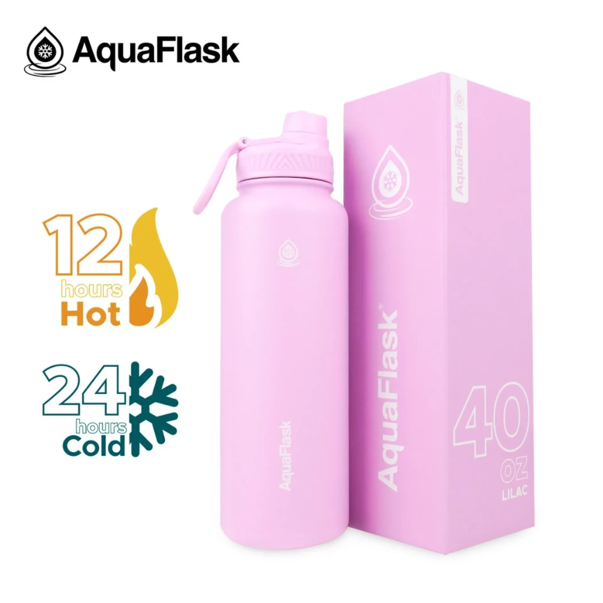 AQUAFLASK (40oz) Wide mouth w/ spout lid Vacuum Insulated Stainless Steel Drinking Water Bottle