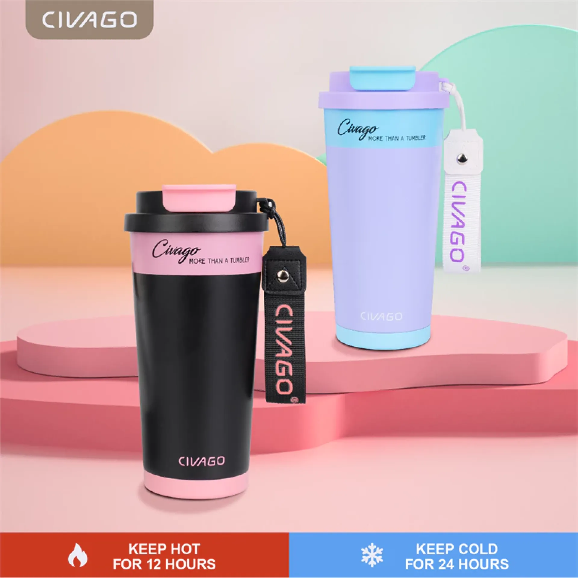 CIVAGO(17oz)Double drinking Stainless Steel Coffee Mug With Lid Vacuum Flask Hot And Cold Tumbler