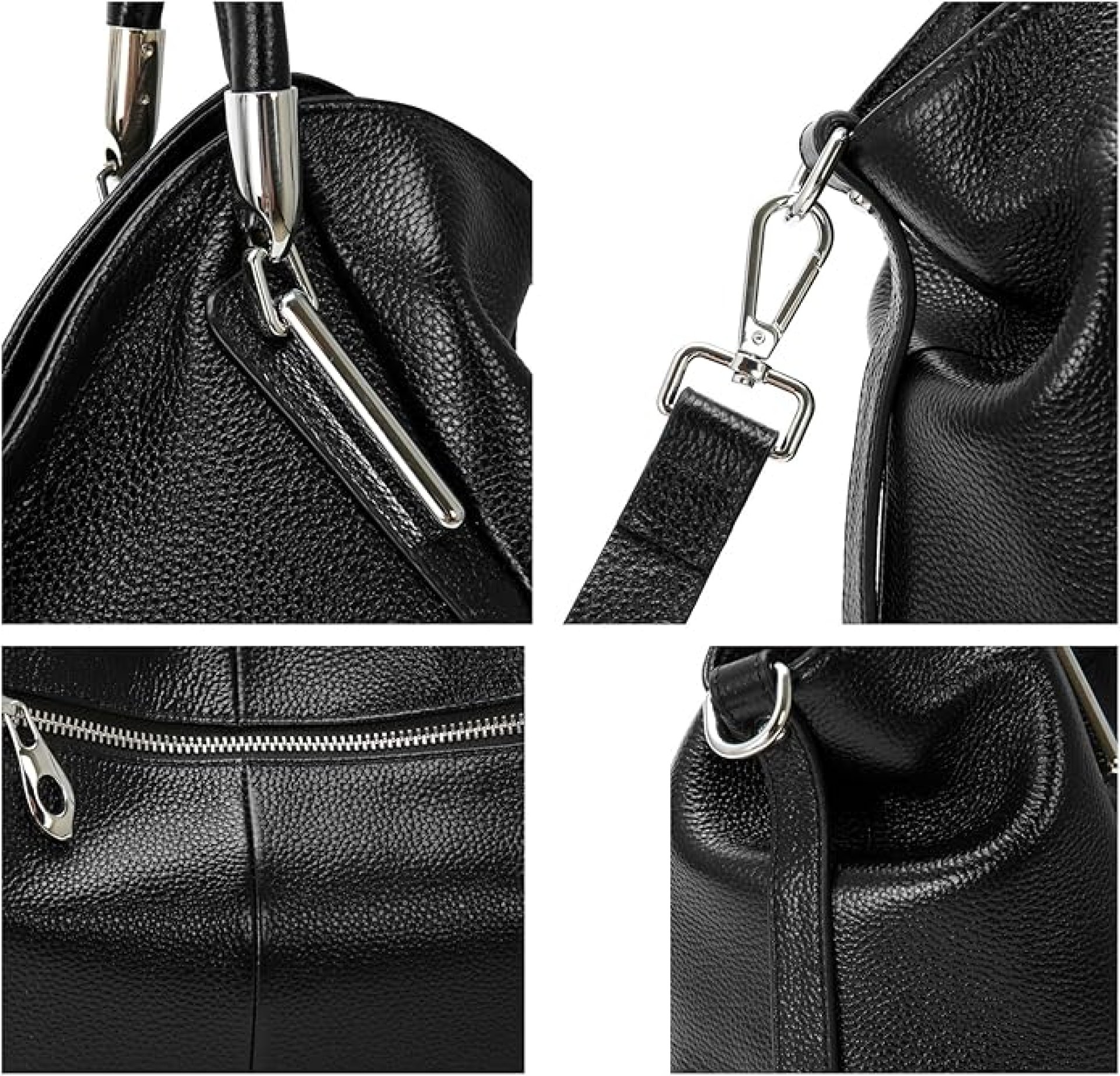 - Versatile Design: The genuine leather handbags have sturdy top handles and a detachable long shoulder strap, offering multiple ways to carry it. Top handle, shoulder or cross-body. The top handle is 7.48in high; the long shoulder strap is about 45.66in-51.57in long.