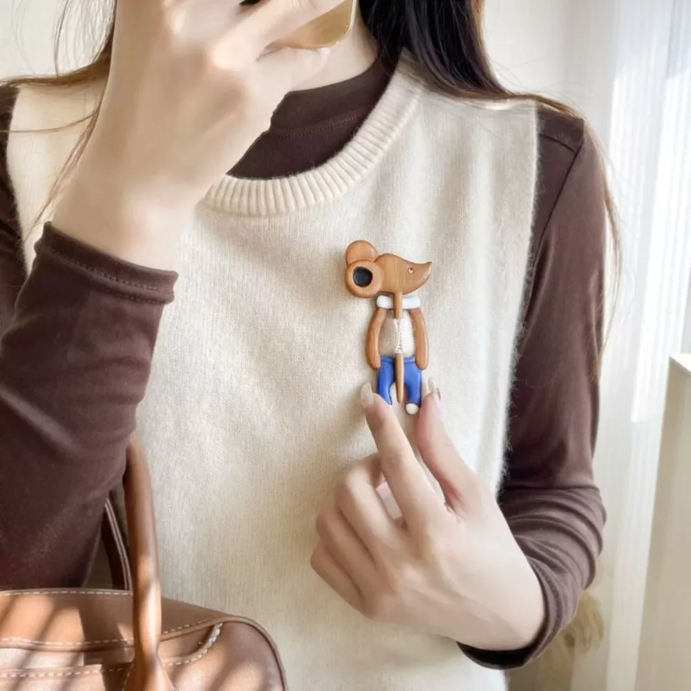 Cute Animal-Shaped Sweater Brooches:These brooches feature whimsical animal designs (mouse, , bear) with hand-painted details (clothing, facial features)--adding a playful, charming touch to sweaters, coats, or bags.
