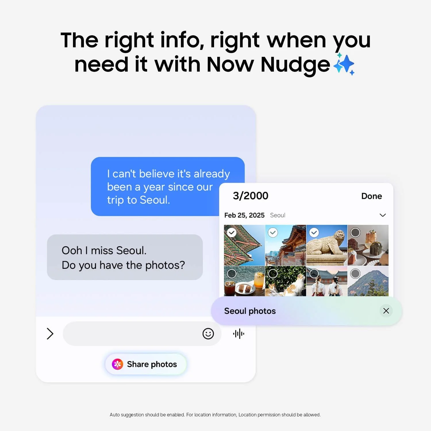 - HELP THAT KEEPS UP: Stay in the moment while Now Nudge with Galaxy AI helps you respond faster and stay organized with smart suggestions⁵ that appear exactly when you need them on your phone