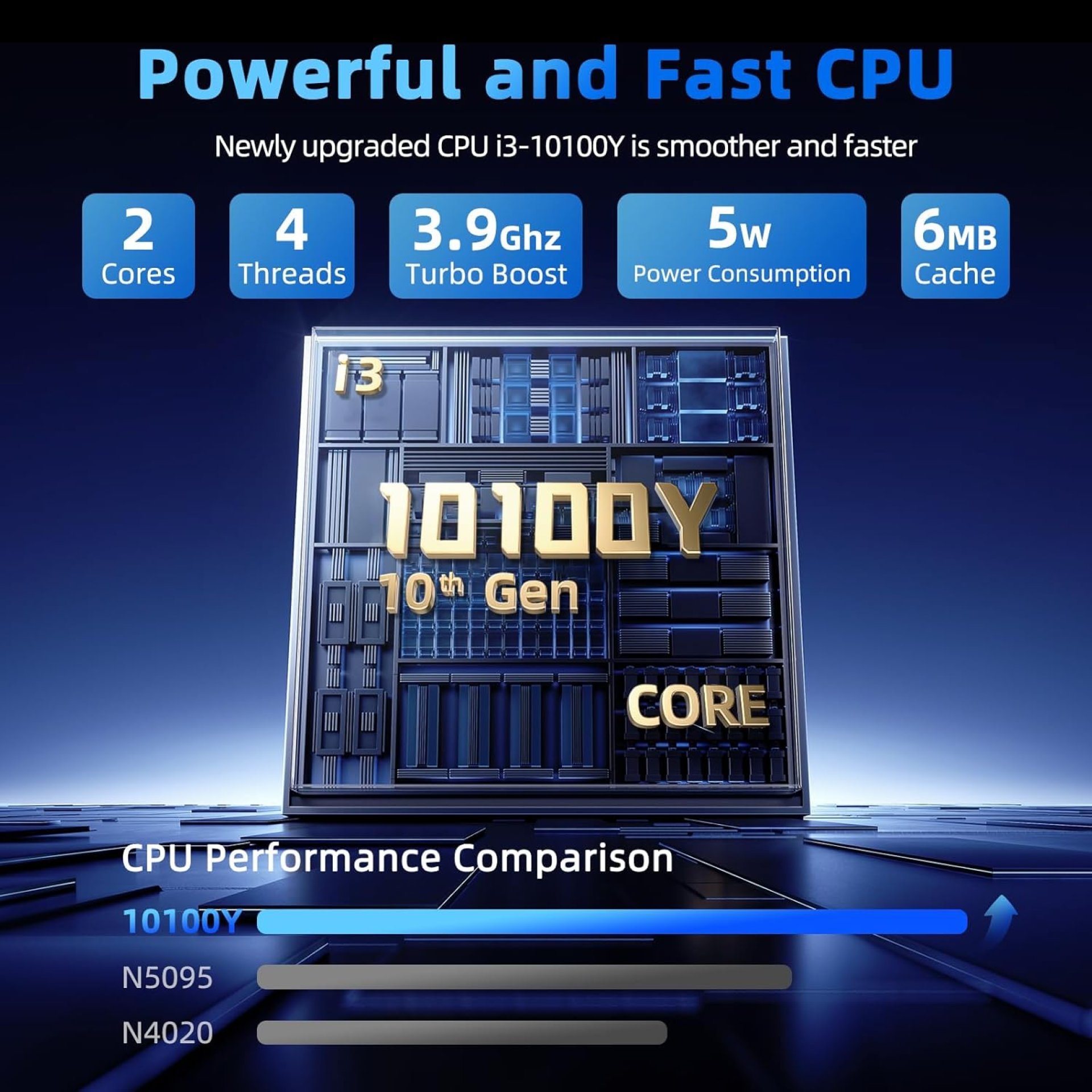 Powerful Core i3 Processor: Equipped with i3-10100 (2-core, 4-thread, 6MB cache, up to 3.9GHz)up to 3.9GHz, this Win laptop delivers essential multitasking capabilities and is suitable for running multiple applications. Its high-speed CPU ensures smooth operation and efficient workflow under heavy workloads